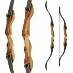 The DRAKE Alabaster Junior is a 3-piece recurve bow that is particularly suitable for children and youngsters. Consisting of a 15-inch or 19-inch centerpiece and combined with fiberglass-reinforced limbs in black, the bow appeals at first glance. Its appearance is defined by a classic real wood centerpiece in warm, brown tones, broken up by decorative strips of reddish-brown wood.